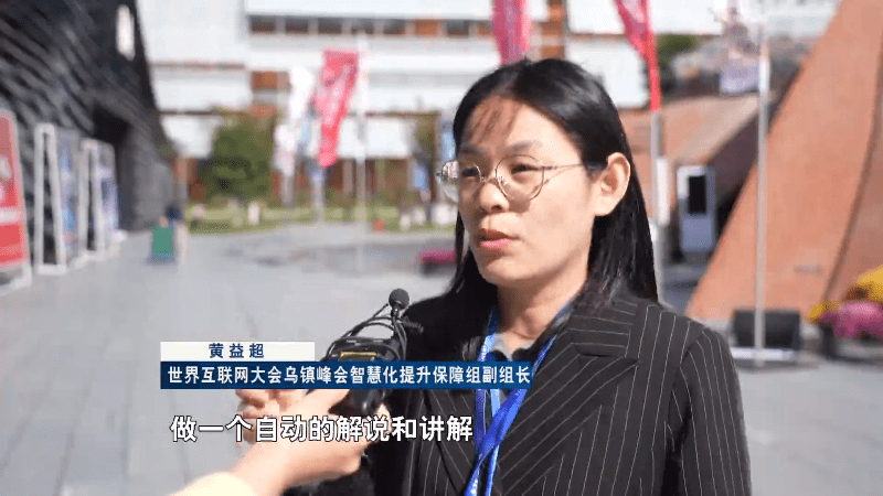 世界互联网大会乌镇峰会智慧化提升保障组副组长黄益超:今年还准备了讲解的耳机,观众可以扫码获取,会带你到各个展区,做一个自动的解说和讲解。