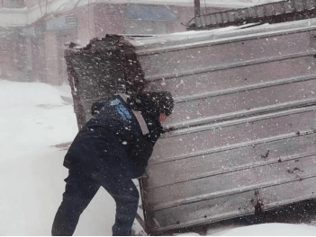 11月6 日,延寿安山乡附近的基站因大雪导致停电。因基站所在地段道路积雪较厚,只能步行进入补充油料。维护人员不顾严寒,合力抬着发电油机、汽油等,在雪地里一步一个脚印往机房慢慢挪去。5小时后,险情解除,零下10几度的低温他们却出了一身汗。
