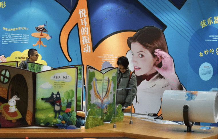 “策划这个展览最大的挑战就是让音乐可见、可玩、可触摸。”策展人张瑶说,为了将音乐与科技深度融合,策展团队想了不少办法。巧思藏在了展厅内一件件展品中:将声音转化为电信号传递给电机,从而带动绳子振动产生不同波形,观众便可以“看见”自己的声音;通过敲击音叉,观察音叉对面的小球的变化,共振现象的原理一目了然;拿起听筒,聆听乐曲的同时还可以摸摸材质,捏捏气囊闻闻香味,感受音乐与触觉、嗅觉的奇妙联动……