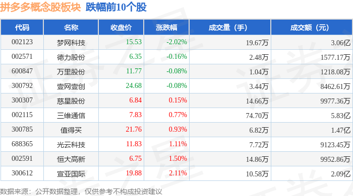 北向资金方面,当日拼多多概念股板块北向资金持股市值为4.87亿元,增持817.43万元。其中增持最多的是梦网科技,增持了0.11亿元。减持持最多的是天音控股,减持了0.23亿元。拼多多概念股板块北向资金持股变动明细见下表: