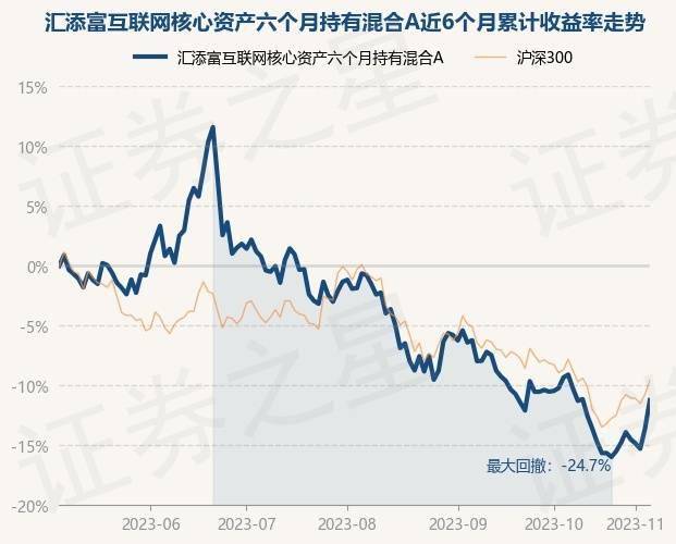 证券之星消息,11月7日,汇添富互联网核心资产六个月持有混合A最新单位净值为0.5713元,累计净值为0.5713元,较前一交易日上涨0.39%。历史数据显示该基金近1个月下跌0.42%,近3个月下跌10.2%,近6个月下跌10.89%,近1年下跌8.91%。该基金近6个月的累计收益率走势如下图: