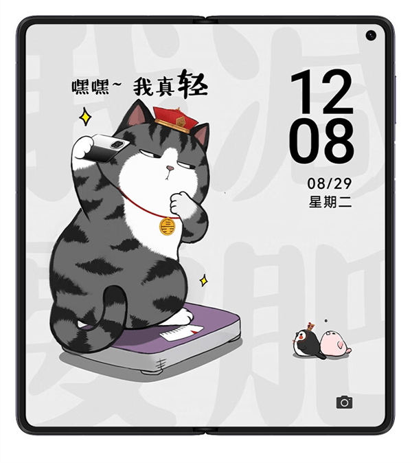 以华为Mate X5为例,其搭载HarmonyOS 4,为大屏折叠机用户带来前所未有的个性化、高效、智慧体验,多种功能有趣好玩,一折一合更加沉浸。比如它首创内外双屏随动表情,屏幕开合之间,吾皇猫会随着双屏转换跳出,且动效内外屏自然切换,而且在息屏显示状态下,吾皇猫的眼睛会随着你的眼睛的转动而转动,十分有趣。