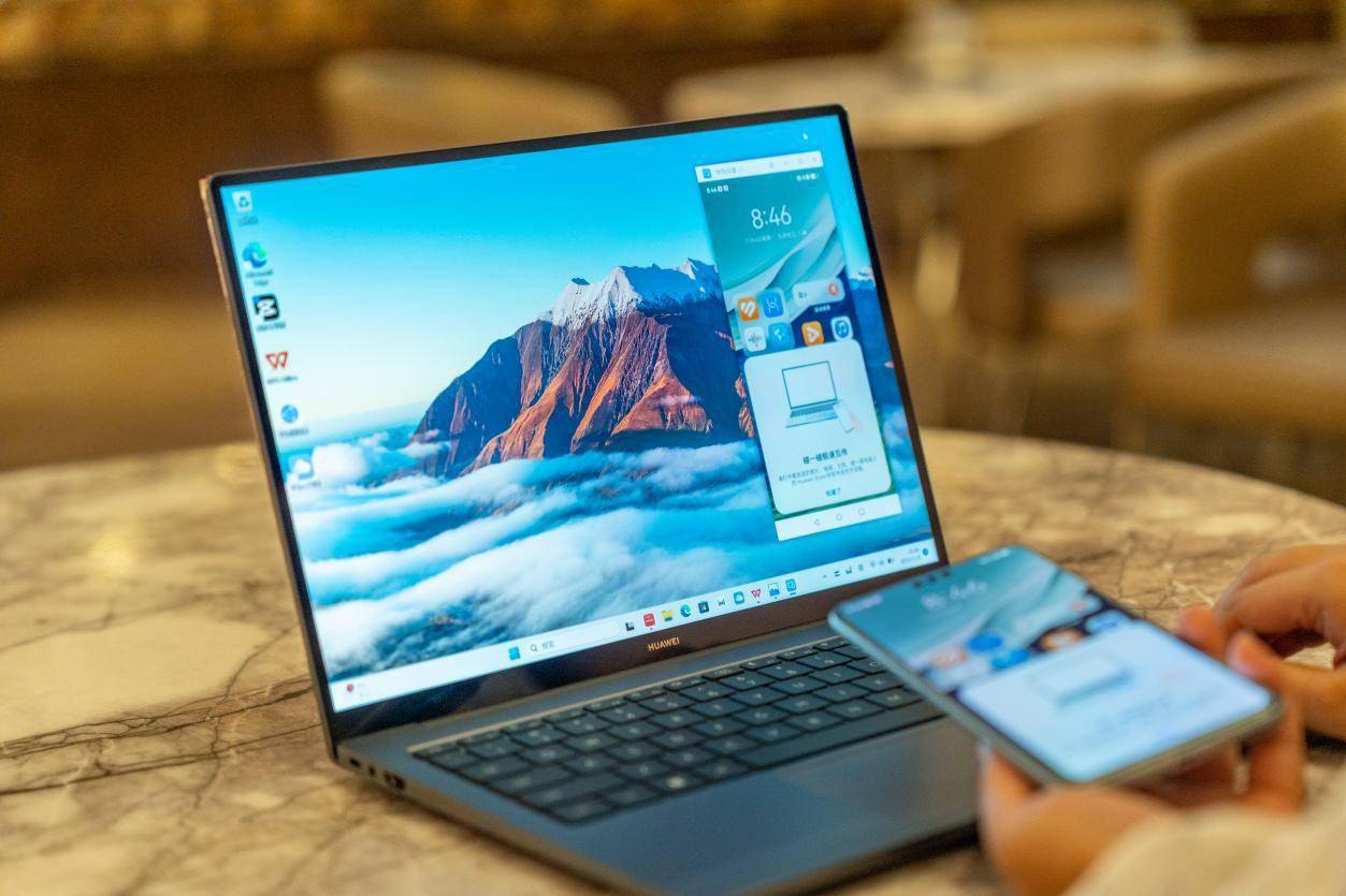 得益于华为擎云 G740 的超级终端,记者可以将素材通过一碰传、多屏协同等方式实现传输。就比如,华为擎云 G740 的笔记本与华为手机一拉即合后,手机页面就会投屏至电脑端,记者可将手机中的图片和视频、文档素材直接拖拽至电脑,值得一提的是,华为擎云 G740 配备了2.1K 触控全面屏支持十指精准触控,无需借助鼠标,也无需触控板繁琐操作,手指的简单拖拽即可高效稳定地完成。