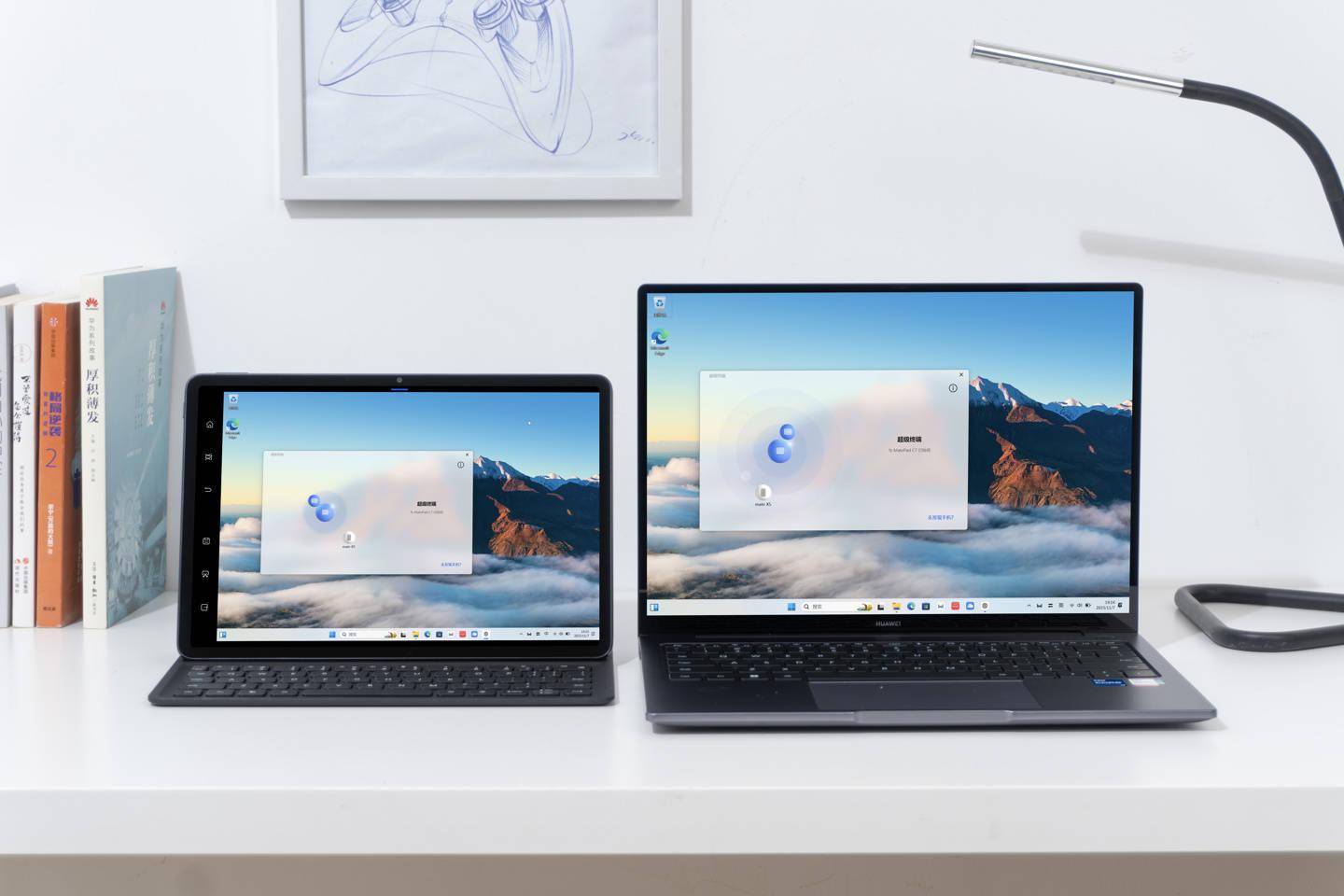 再谈到现场剪辑视频等需求,华为擎云 G740 通过与华为擎云 C7 平板进行“多屏协同”,在扩展模式下,C7 平板就能作为笔记本的扩展屏,记者朋友可以一边用笔记本剪辑素材,一边将作为笔记本副屏的 C7 平板进行素材检索、整理工作。同时“智慧搜索”功能支持素材跨设备查找,让素材整理效率明显提高。