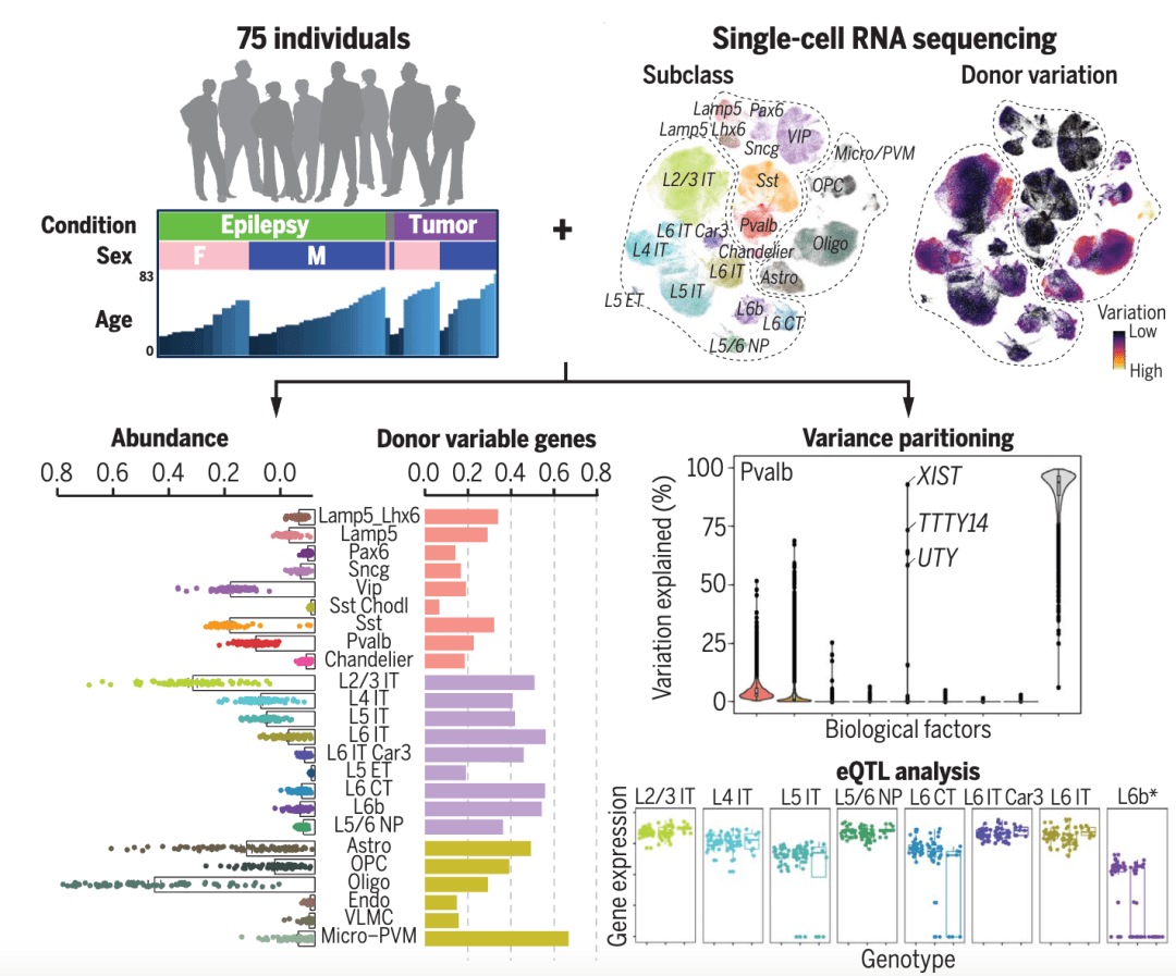▷图 5:转录组学(snRNA-seq)和基因组学(WGS)分析揭示人类皮层细胞类型的个体差异。图源:参考文献[4]