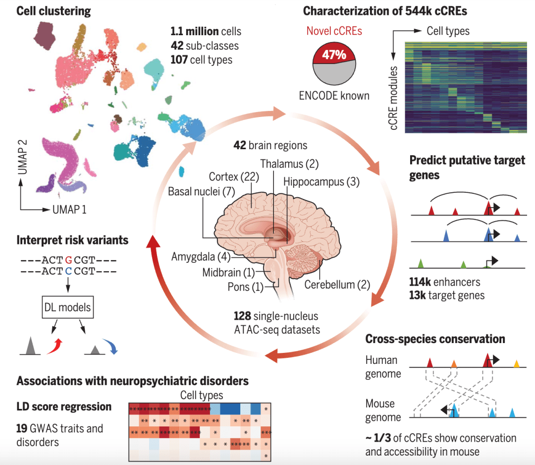 人类基因组中有数以万计的序列变异与神经精神疾病的病因相关,但它们主要位于编码区之外,因此解释这些已知风险变异的作用始终是一大挑战。这些非编码疾病风险变异可能通过扰乱转录调控元件来发挥作用,调控与神经精神疾病相关的细胞的基因表达,而转录调控与染色质的可及性密切相关。