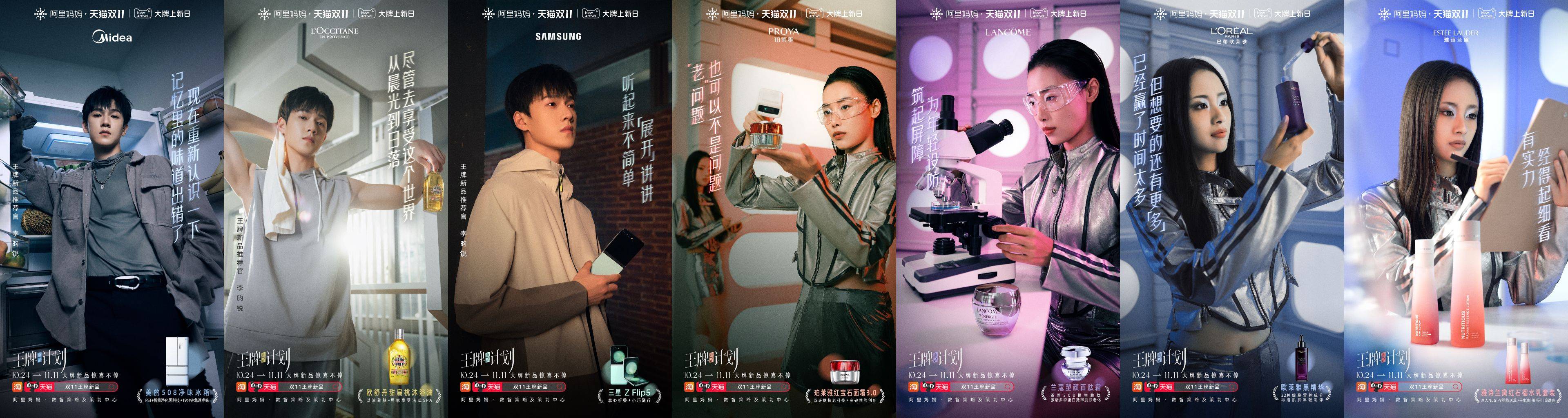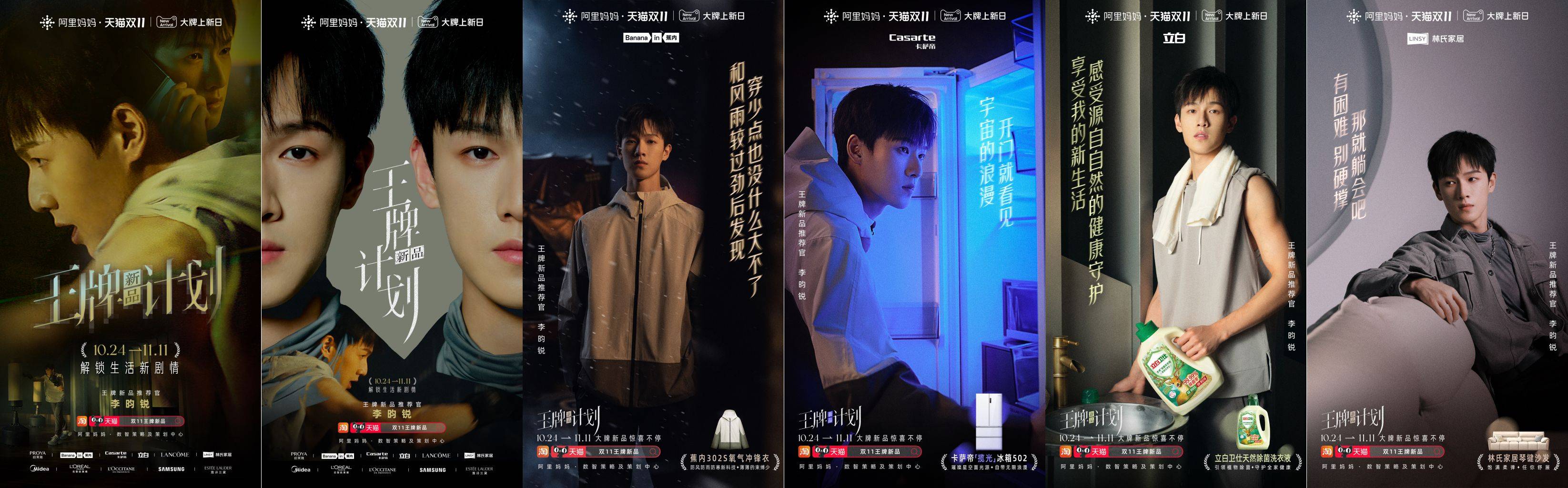 内容创意营销层面,王牌新品计划邀请近期大热的封神质子团成员——李昀锐担任“王牌新品推荐官”,并与11家品牌新品共同演绎新生活态度视频。从预告明星剪影作为预热开始,到联合发声发布TVC,以李昀锐为主视野在五大场景中解锁生活新剧情。持续释出明星话题物料不断吸引粉丝关注,12个相关话题登上热搜榜单,随即发布明星同款双11好物,助推新品破圈引爆。最终视频在全网播放量超500万,总曝光量超2亿。
