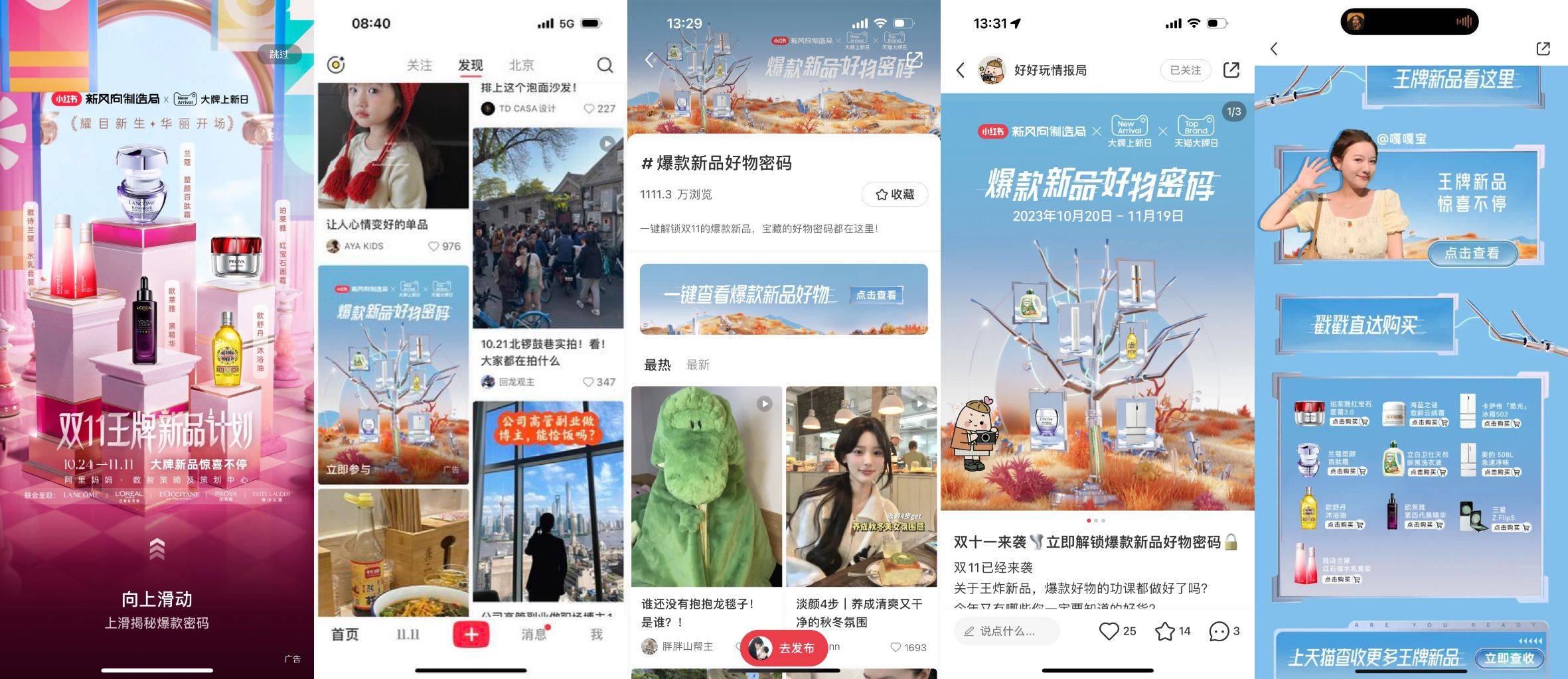 除此以外,王牌新品计划联合小红书官方打造的专题活动#爆款新品好物密码,截止目前,活动话题浏览量1253.9万,吸引5042人分享购物车里的宝藏新品,多资源矩阵打造双11场域氛围之余,双向加速新品种草。同时,不同品类种草人群被清晰划分,通过站内外广告二次触达,从而找到种草、沉淀的最大可能性,并在广告的持续触达中最终完成转化。