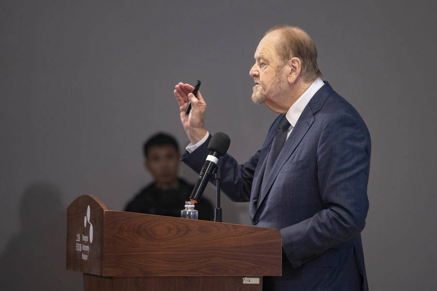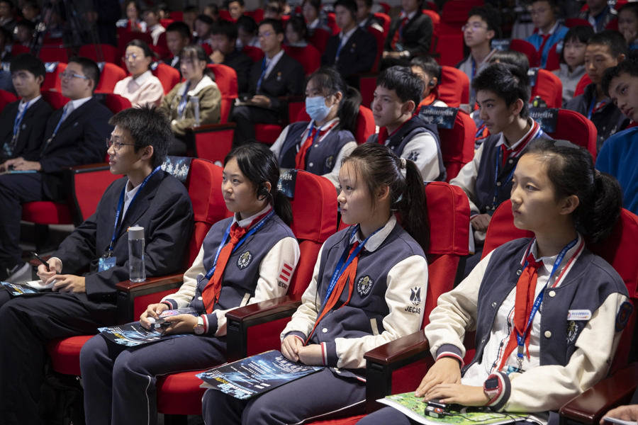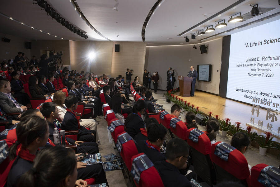 11月7日,在上海天文馆,2013年诺贝尔生理学或医学奖得主、WLA世界顶尖科学家詹姆斯·罗斯曼,与全市100多位来自科创教育特色学校的师生面对面交流互动。这是“科际穿越·科创校长空间站”WLA世界顶尖科学家校园行特别活动。