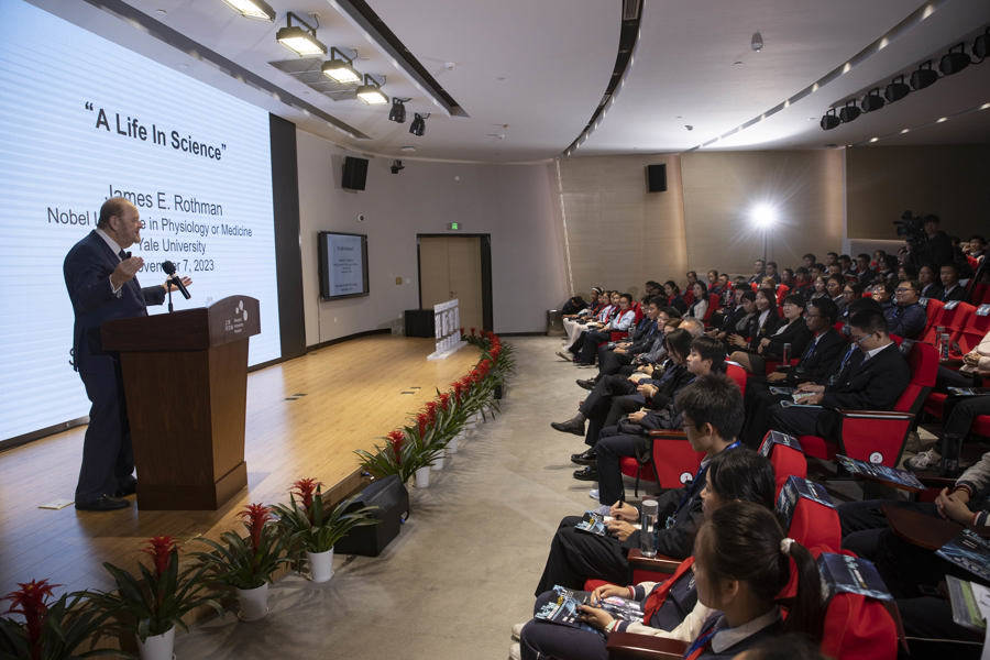 当天,詹姆斯·罗斯曼以“A life in science”为演讲主题,重点为大家揭秘了自己的重大研究成果:突触中神经递质释放的机制。此外,詹姆斯·罗斯曼教授还分享了自己科学生涯中的有趣经历,并向青少年们表达了自己对科研的态度,鼓励大家遵从内心的想法和兴趣,选择自己喜爱的研究领域,不断去尝试新方法,不要因为害怕犯错而止步不前。