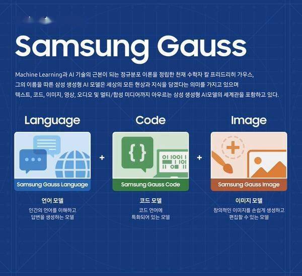 据IT之家报道,该大模型由 Samsung Gauss Language、Samsung Gauss Code 和 Samsung Gauss Image 组成,以建立机器学习和人工智能支柱正态分布理论的传奇数学家约翰・卡尔・弗里德里希・高斯的名字命名。
