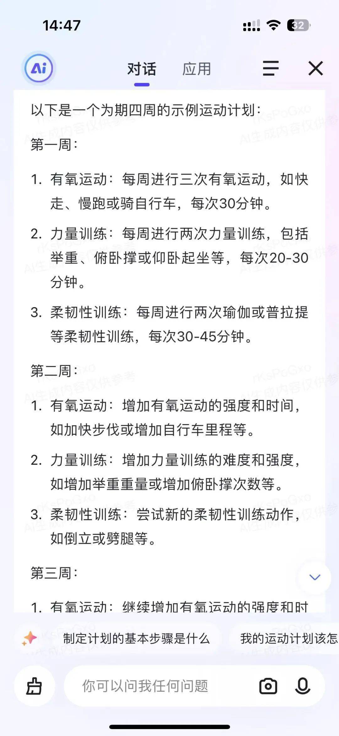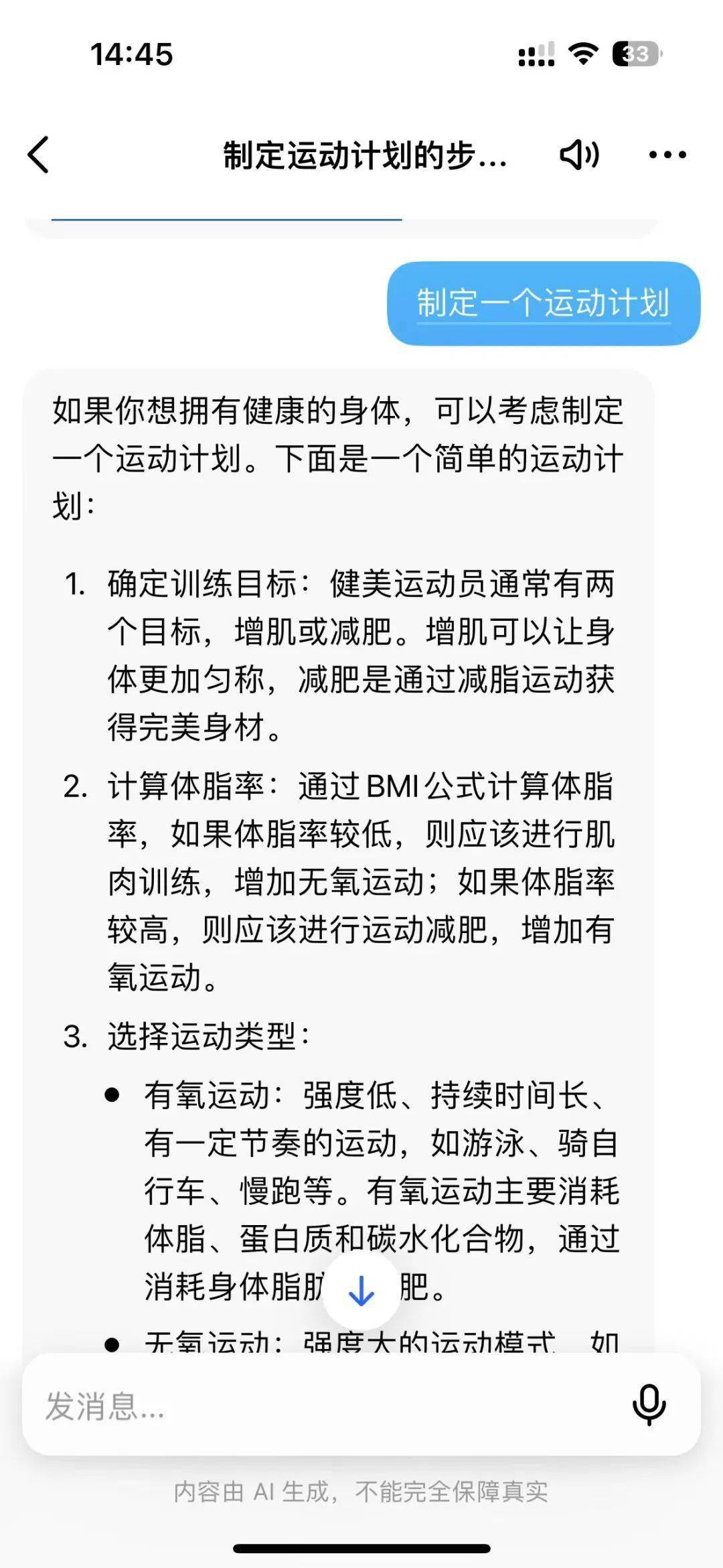 我把同样的问题抛给了百度的文心一言和字节的豆包,两者都能及时响应,且给出了较为详细的计划,并对计划做了解释说明。