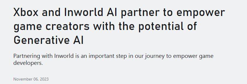 根据微软的一份新闻稿,微软正在与Inworld AI公司合作开发Xbox工具集,允许开发者创建人工智能(AI)驱动的角色、故事和任务。