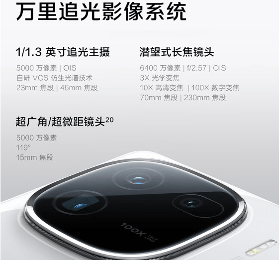 影像方面,iQOO 12搭载万里追光影像系统,搭载6400万像素潜望式长焦镜头、5000万像素超大底追光主摄、5000万像素超广角镜头,硬件实力出众。iQOO 12系列搭载神经图像计算引擎,拍摄更轻松,支持手持星空模式,手持数秒即可拍出星空大片,超大底结合第二代运动自适应多帧融合技术带来更好动态拍照效果,还有多种国潮水印,照片更具风格。