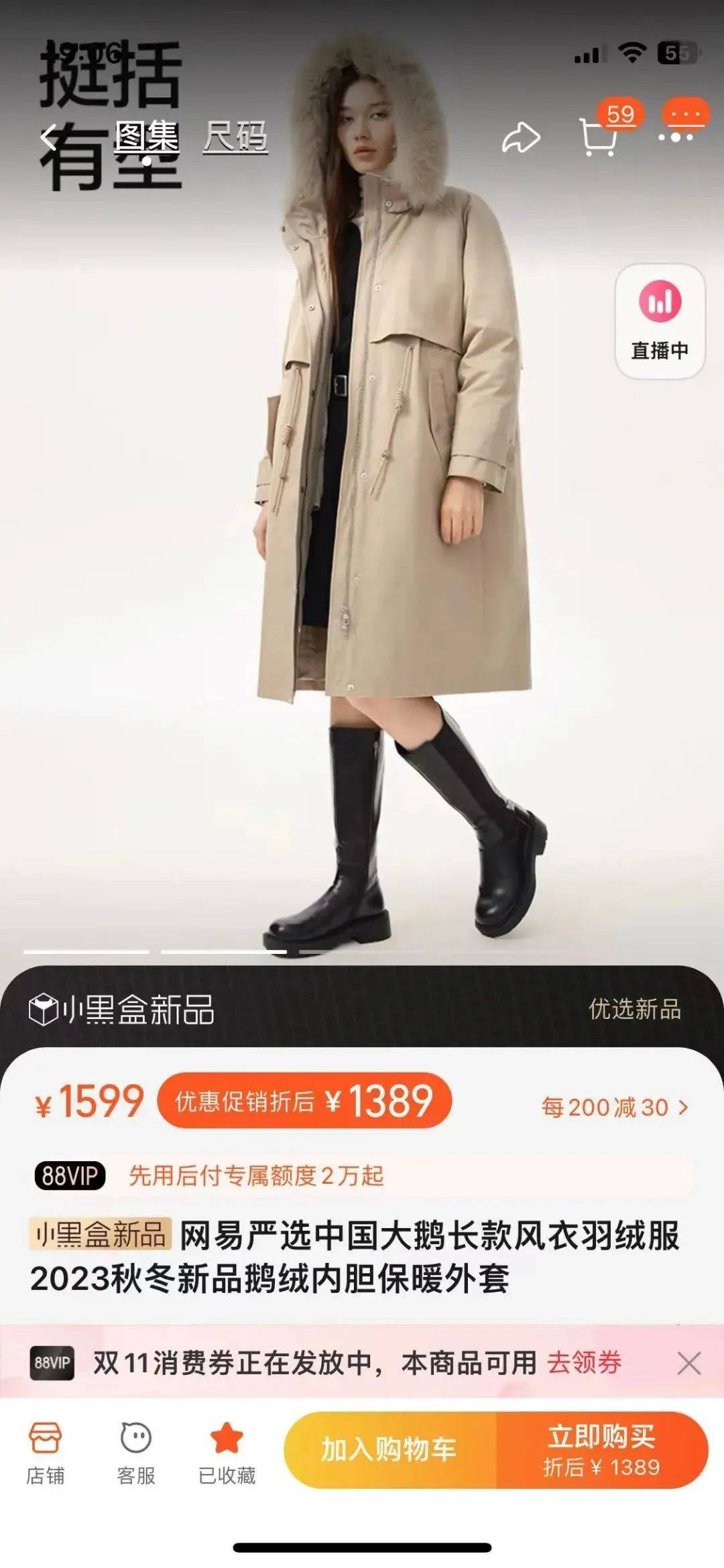 据了解,争议中的中国大鹅羽绒服为网易严选今年推出的新品,定价在999元-1399 元不等,11月7日晚,商业那点事儿小编看到,网易严选天猫期舰店已重新上架了相关羽绒服产品,叠加双11优惠力度后,售价基本在599元-1389元不等。