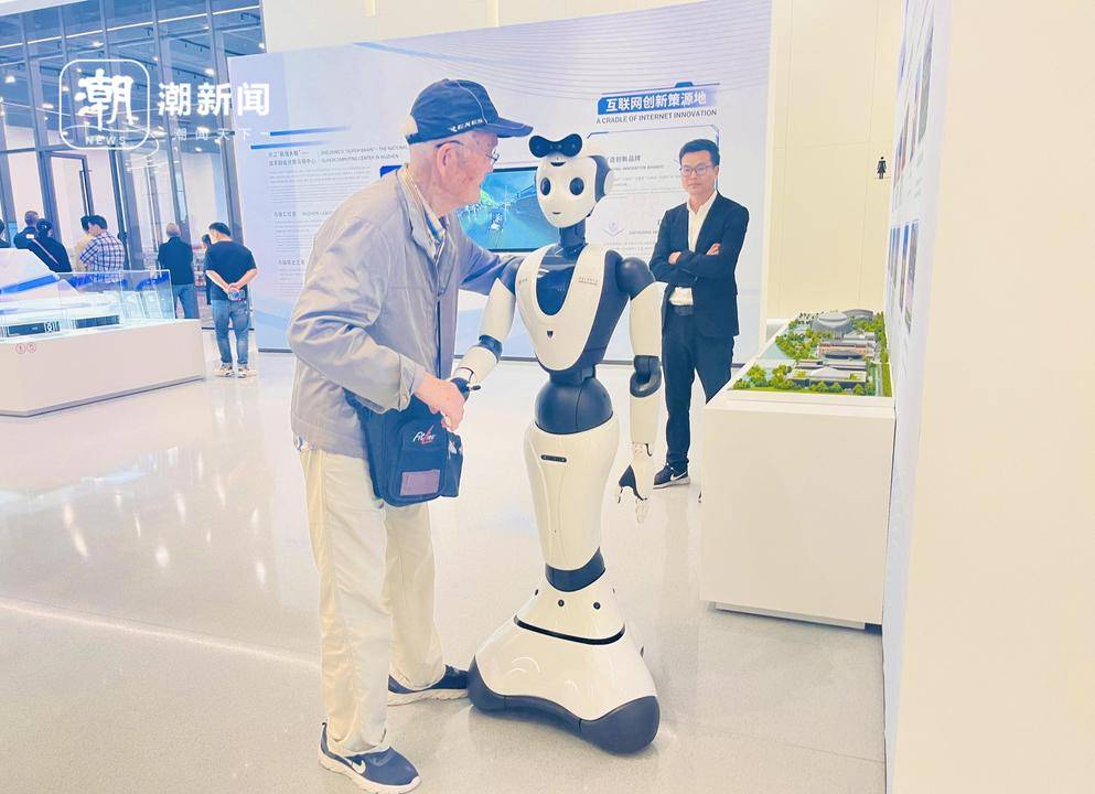 “它握得挺有力,跟人有点像呢。我89岁了,但是对新鲜事物还是很好奇的。去年这个时候我也来逛了,看到的机器人越来越智能了。”老伯说,“这种机器人能和我聊天,帮我做事,真希望有一天可以走进生活中。”说完,老人还和机器人拥抱一下。