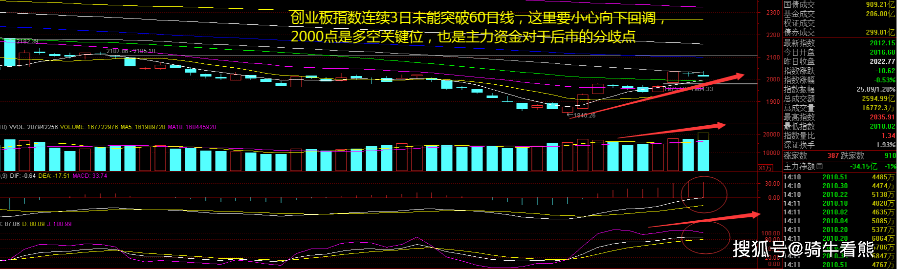 创业板指数周三上攻60日线未能突破,再度回落,这也是本周连续3次上攻失败。按照牛哥之前复盘所说:“这里要是上不去,要小心出现扭头向下的走势。”随着创业板指数的大起大落,个股也出现了不同程度的回调,午后更是出现了个股跌多涨少的局面,这样的盘面要注意近期会出现变盘走势。接下来注意创业板指数能否在2020点之上稳住。