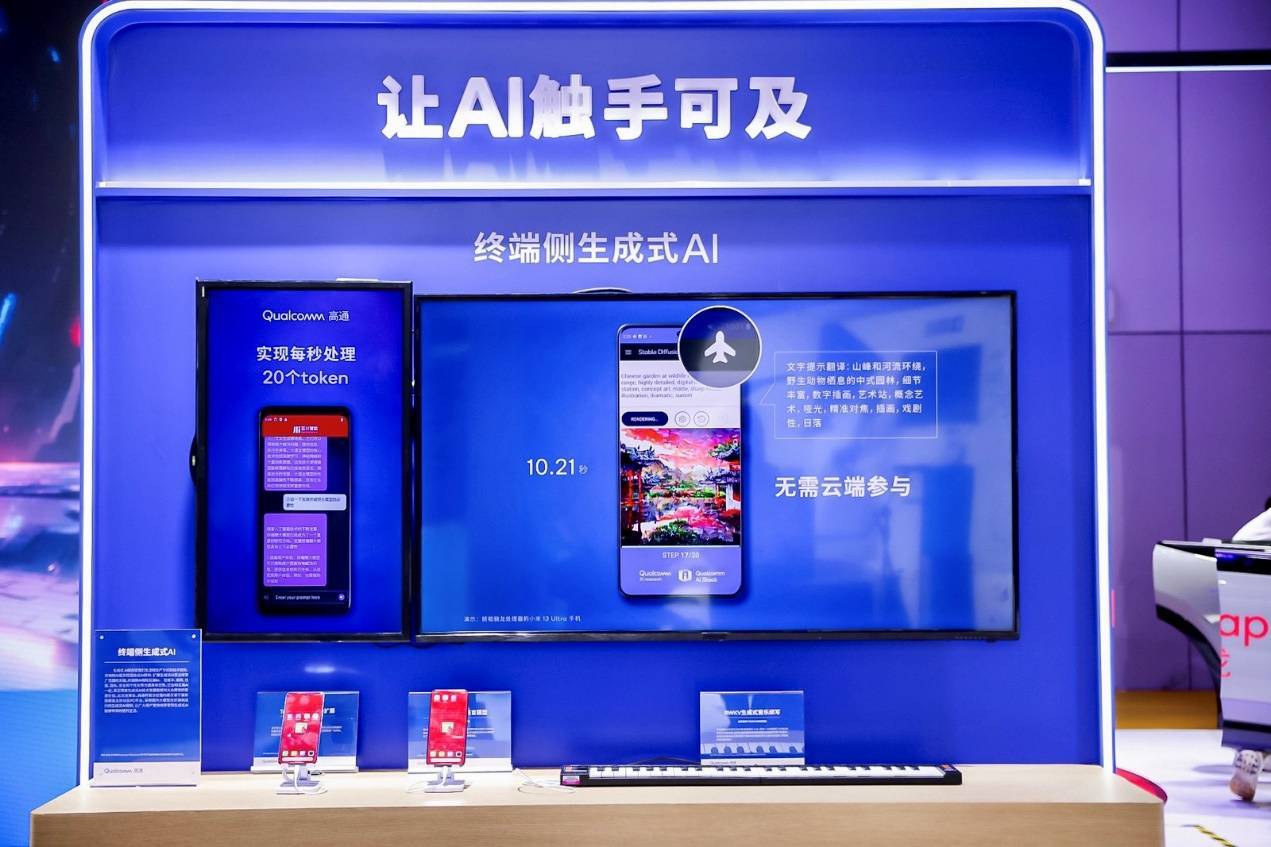 在本届进博会的高通展台,参观者可以看到国内首次展示的骁龙X Elite参考设计笔记本,这是高通迄今为止面向个人电脑打造的最强计算处理器,支持在终端侧运行超过130亿参数的生成式AI模型。