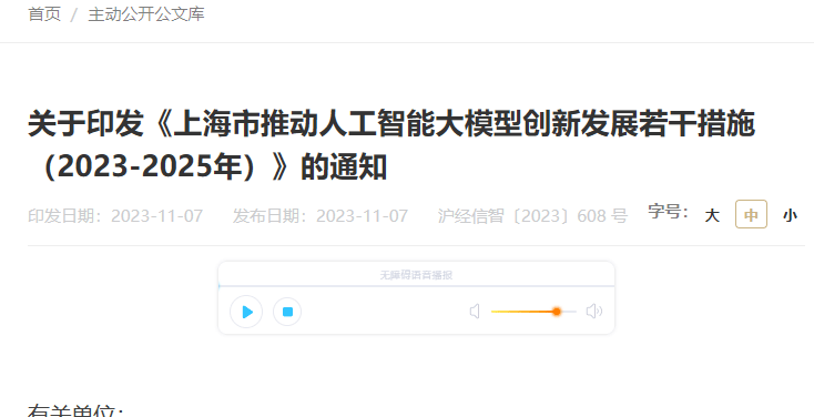 上海市推动人工智能大模型创新发展若干措施(2023-2025 年)