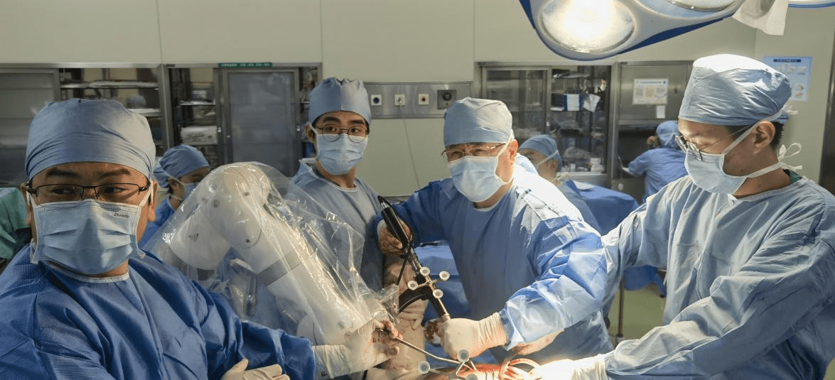 吕松岑教授(右2)带领团队成功完成黑龙江省首例机器人辅助髋关节置换手术(央广网发 哈医大二院供图)