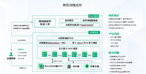 通过上层 MaaS 产品服务,用多种算力配备高速的 IB 网络,可支撑用户在青云云平台上快速上线其预训练模型、通用模型以及行业应用模型,从而助力其快速开展自身训练推理的应用。随着 AIGC 的不断发展,青云也在不断地探索和迭代 MaaS 模型的产品服务。