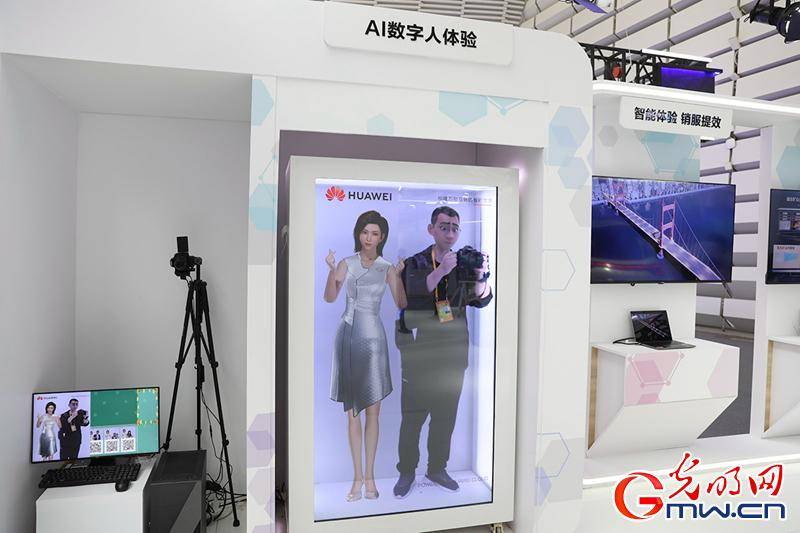 相较于传统的动画,数字人技术可以实现更加复杂的动画效果。2023年11月7日,游客在“互联网之光”博览会记者体验华为的AI数字人技术。(光明网记者崔益明/摄)