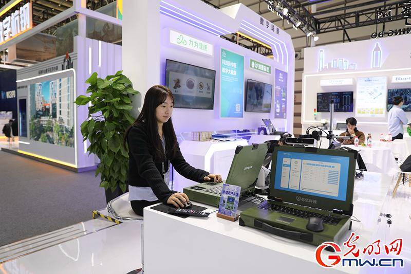 浙江宝兴智慧城市建设有限公司推出的“AI心理健康动态检测管理系统”利用AI进行数据采集和心理分析,提供健康分析。图为2023年11月7日,游客在“互联网之光”博览会体验AI心理分析系统。(光明网记者崔益明/摄)