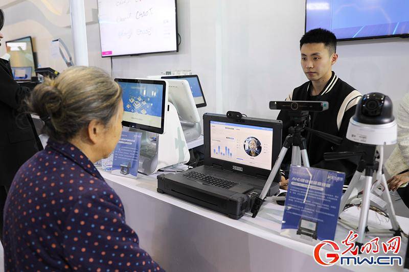 通过一个摄像头,几十秒时间便能检测到人体各项基本指数,沐恩芯忆的“AI身心健康评估系统”,通过面部识别便能实现这一功能,甚至还能根据性格提供职业参考。图为2023年11月7日,游客在“互联网之光”博览会体验AI评估系统。(光明网记者崔益明/摄)