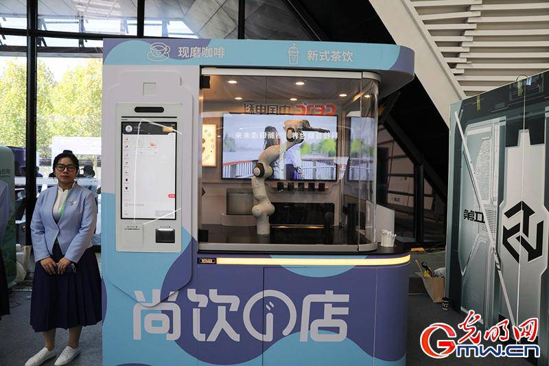 图为2023年11月7日,“互联网之光”博览会上展示的自助无人饮料机。(光明网记者崔益明/摄)