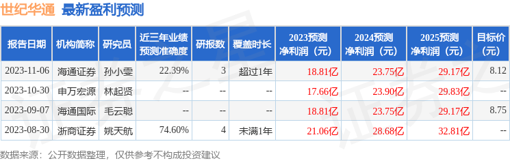 以下是详细的盈利预测信息: