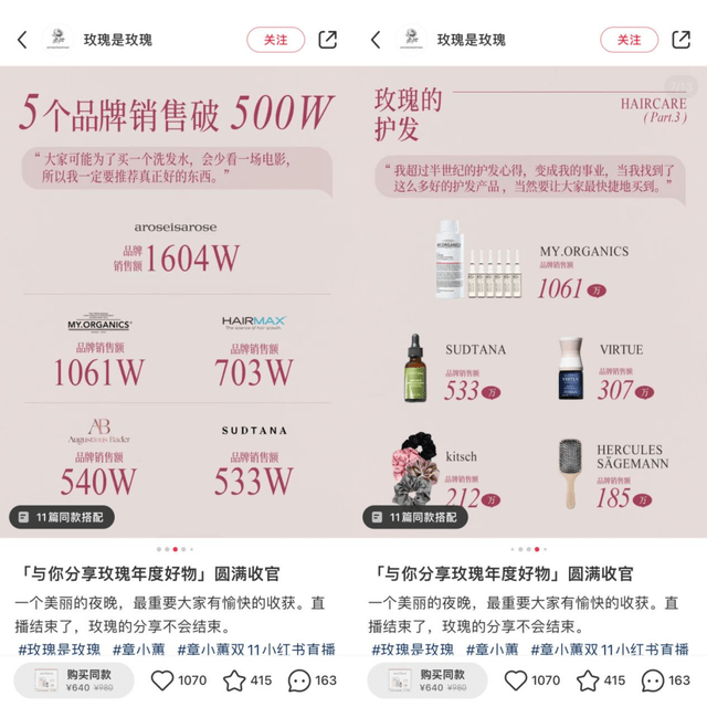 比如被章小蕙推荐过的My Organics品牌此前在国内销量不大,整体知名度也不强。但经由章小蕙独到的推荐,很多美妆博主都自发成为了种子用户来做测评,而后又推荐给了自己的粉丝。如此一轮轮的推荐下来便形成了滚雪球状态,品牌的声量从直播间一路扩散至全网。小红书电商美护商家负责人乱菊在采访中也提到,章小蕙的直播后My Organics便调整了防脱套组安瓶的库存,Augustinus Bader的护唇膏也做了极限库存量的准备。