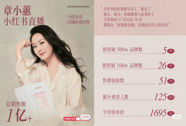 10月15日,被称为“带货鼻祖”的章小蕙在小红书开播。彼时各大电商平台的双11活动都未开始,小红书则借此机会率先打出声量,实现“开门红”:章小蕙的直播中,共有26个品牌销售额破百万,5个品牌销售额超过500万,最终单场直播总销售额破1亿,这也是小红书首位销售额破亿的主播。