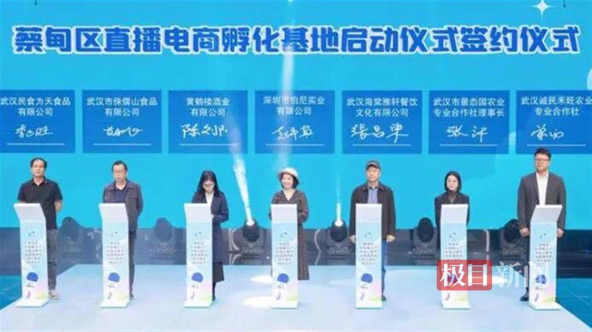 启动仪式上,蔡甸区总工会为直播电商孵化基地授牌“爱心消费扶贫定点采购单位”;中国建设银行蔡甸支行与武汉云泓数字科技有限公司签订战略合作协议,并向直播电商孵化基地授信;深圳市伯尼实业有限公司、黄鹤楼酒业有限公司等七家商家代表与直播电商孵化基地签订战略合作协议。