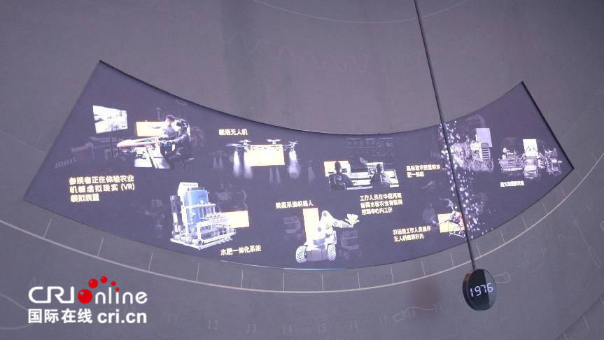 其中,在“互联网支撑数字发展道路”展区内,对比影像装置“半百(摆)时光”引人注目。钟摆每摆动一次,对应着五十年间世界因互联网而产生的巨大变化,内容涵盖工业、农业、服务业等领域。在工业领域,信息技术与制造业深度融合让企业加快了自动化、智能化改造;在农业领域,过去是“面朝黄土背朝天”,现在播种、施肥、收割、灌溉等都已开始从机械化迈入智能化阶段;在服务业领域,电子商务的发展让传统的贸易方式发生翻天覆地的变化,利用电商平台,人们足不出户就能够购买到千里之外的商品。