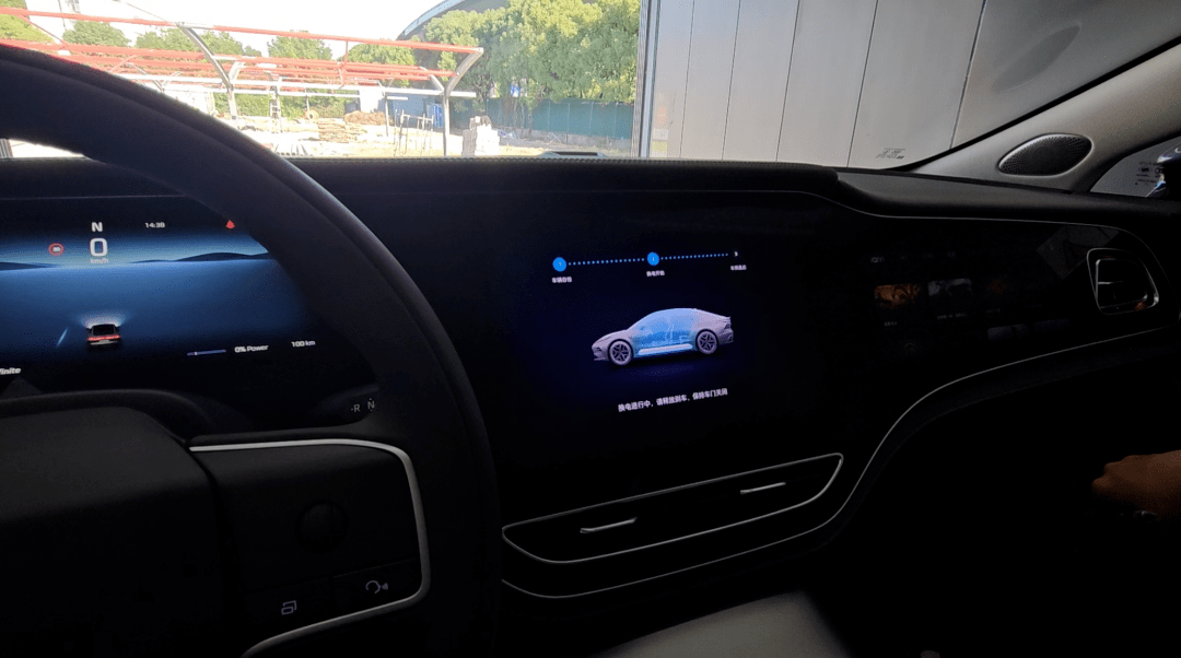 除了换电站上的区别外,飞凡的换电与其他品牌的换电的最大不同是飞凡换电期间不会进行断电,小电瓶依旧可以给车内供电,例如座椅的按摩加热、副驾与后排的娱乐屏依旧可以正常进行工作,对于副驾以及后排乘客来讲基本是属于无感换电。