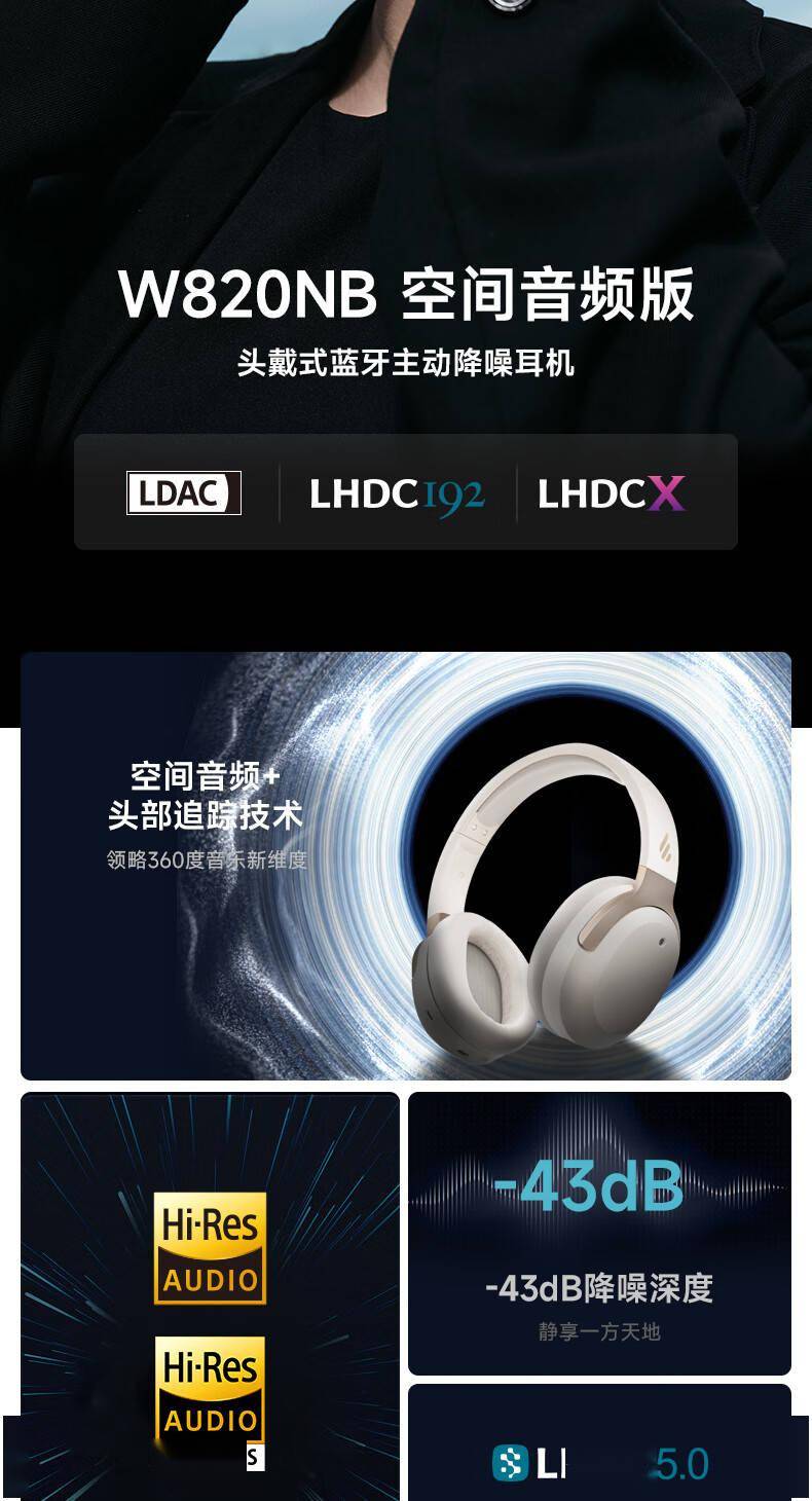 IT之家 11 月 9 日消息,漫步者 W820NB 空间音频版现已上架,首发价 499 元。