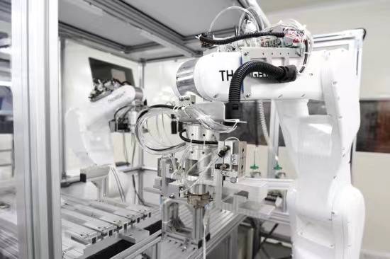 金山科技智能工厂数字医疗设备生产线上的工业机器人。