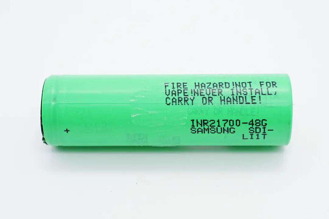 三星INR21700-48G,容量为4800mAh,最大充电电流为4.8A,最大放电电流为35A。