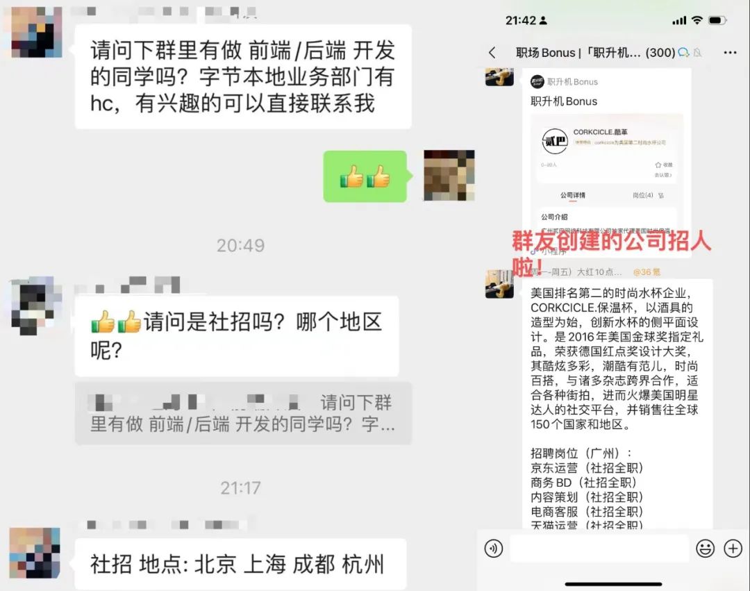 同时,我们在长达10个月的运营中,积累了1w+科技行业的优质HR社群作为backup。如果你在各大求职软件上遍投简历不着,欢迎来一段自荐,很有可能在我们的HR社群被快速打捞起哦。