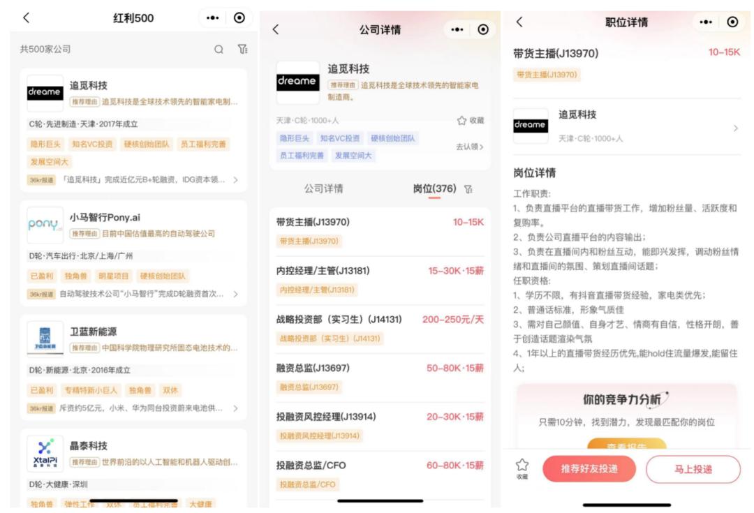 同时,榜单中滚动更新的红利公司(全年共计1000+),将逐步涵盖全国一二三四线城市,同时覆盖全品类岗位和各个阶段的学历/经验要求。
