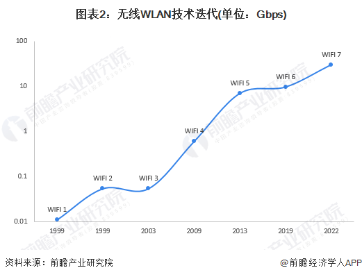 经过20年的发展,WIFI技术从1999年第一代问世,到2019年第六代落地,技术发展迅速,传输速度也得到大幅提升。2022年1月,联发科完成首次WiFi7技术现场演示。WiFi 7速度可高达30Gbps,是WiFi 6最高9.6Gbps速率的三倍之多。