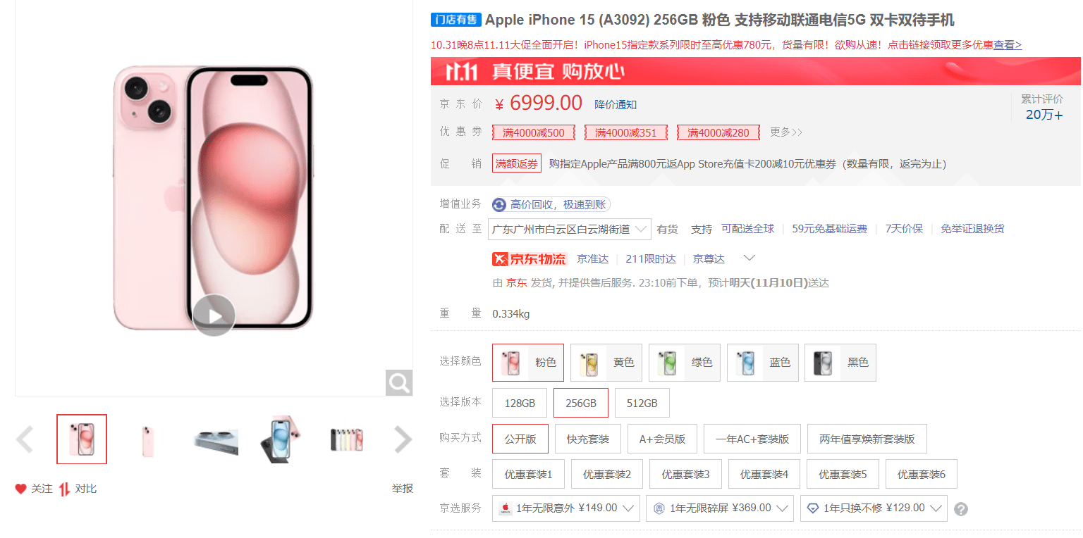 此刻想买iPhone 15的心情降到了冰点,虽然目前双十一苹果降价力度很猛,但没有高刷屏,而且256GB版本也要6K+,还是很难让人果断剁手。