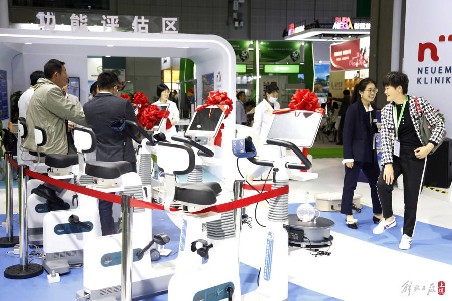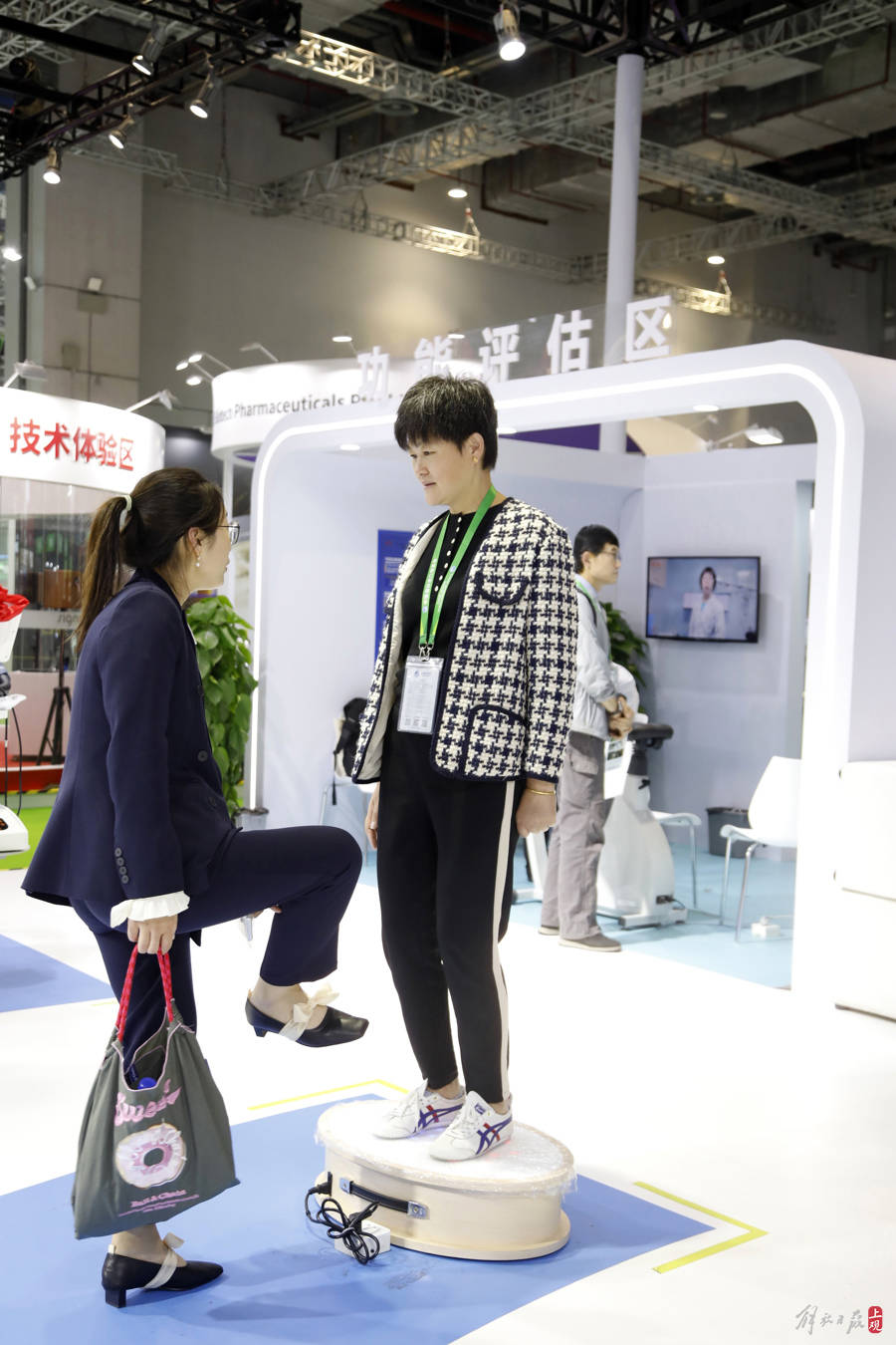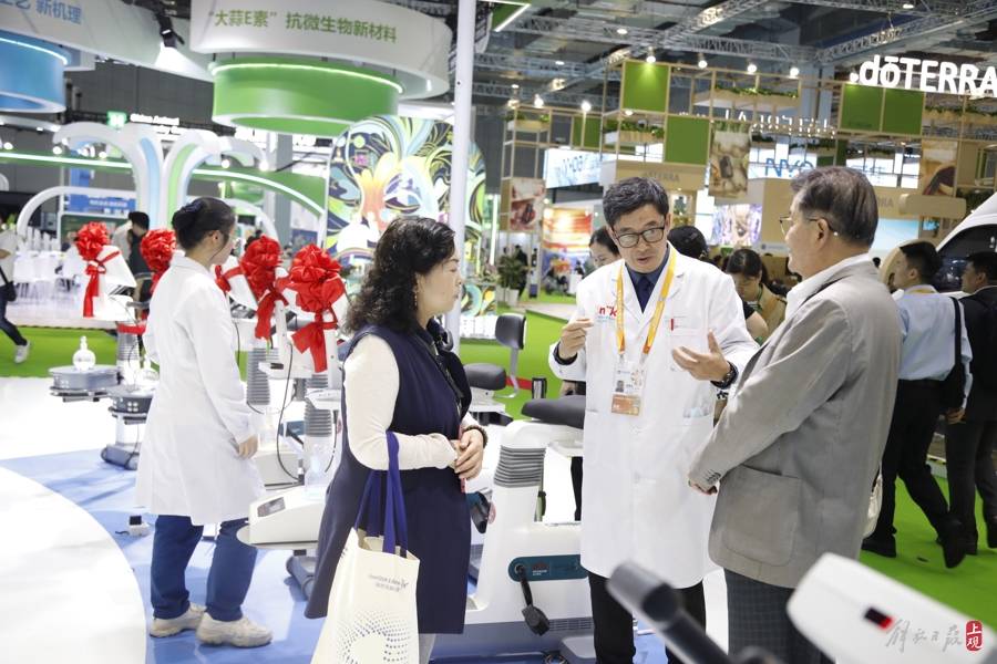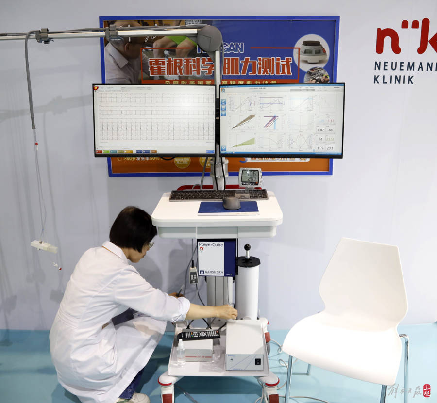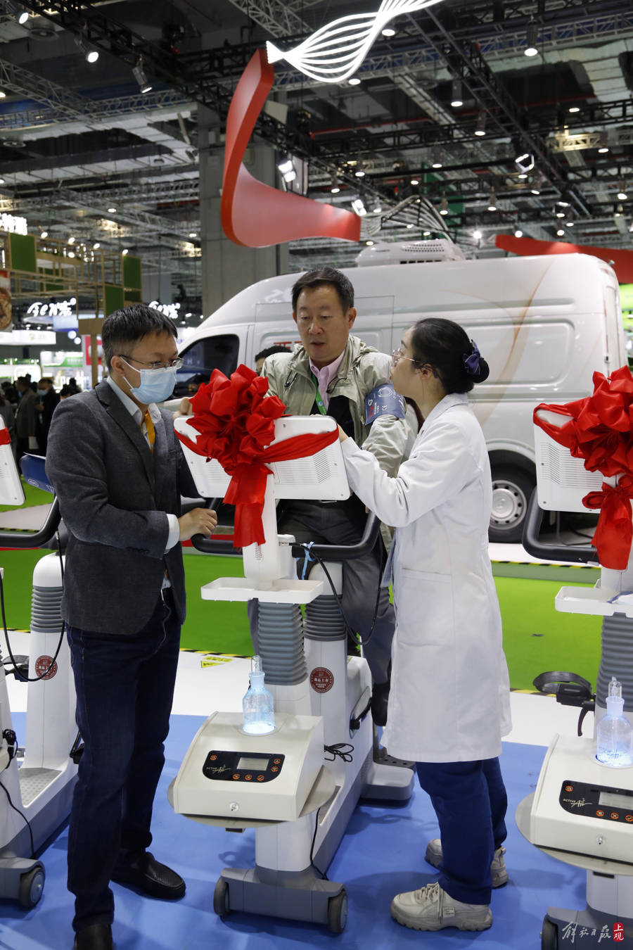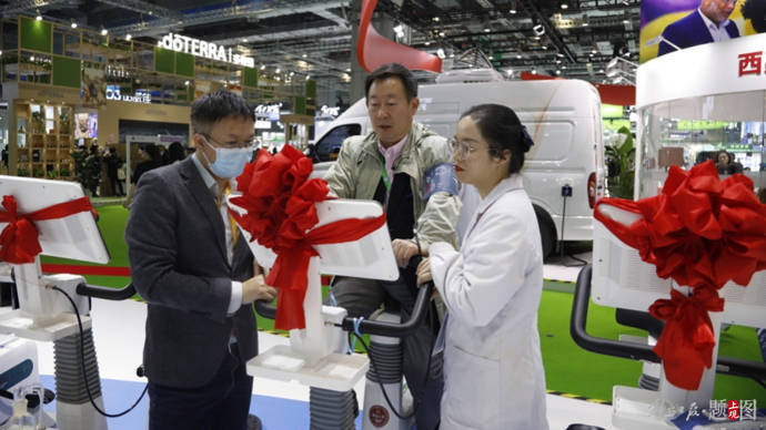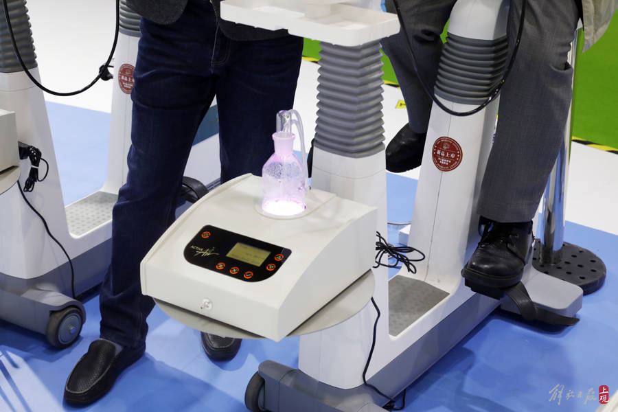 本届进博会上,医疗器械及医药保健“健康中国专区”, 一台特殊的“脚踏机”成为人们争相体验的焦点展品,吸引众多观众前来体验。