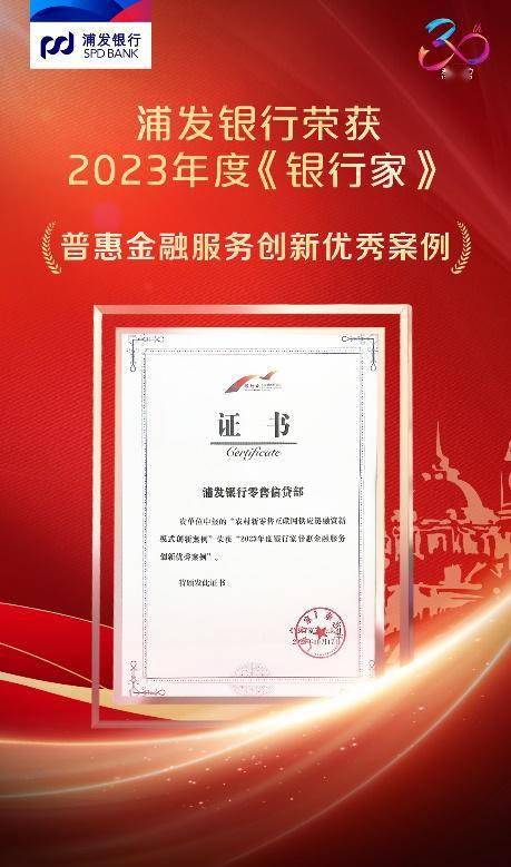 值得一提的是,近日,浦发银行“天猫优品预付贷”业务模式被《银行家》杂志评为“2023年度银行家普惠金融服务创新优秀案例”并入选《2023银行家创新优秀案例集》。