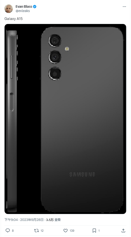 IT之家 9 月 29 日消息,消息源 @Evleaks 今天发布推文,分享了一张三星 Galaxy A15 手机的模糊渲染图,可以看到机身背面采用了 3 个独立的相机单元,旁边是 LED 闪光灯。