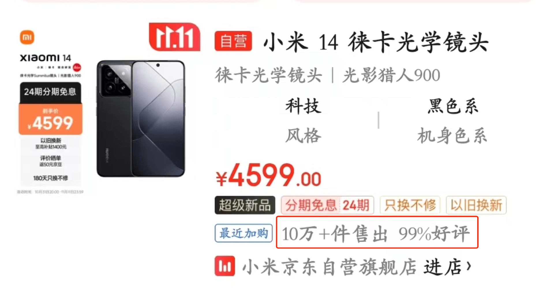 那么问题来了,小米14系列这么受欢迎,究竟是谁在买呢?央媒道破了关键!从小米14系列上市以来,央媒就多次点赞表扬小米,且多次为小米澎湃OS系统“撑腰”,很显然,选择小米14系列的消费者,多半也是被小米澎湃OS系统所吸引。而小米14系列在某东上的好评率高达99%,这也说明了,小米澎湃OS获得了用户的认可。