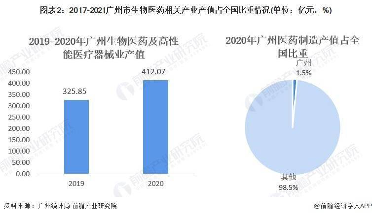 2020年,广州生物医药与健康产业的增加值达到1318亿元,同比增长6.2%。规模以上的医药制造业产值占全国的比重为1.5%。规模较大的生物医药及高性能医疗器械业产值达到412.07亿元,同比增长23.5%。到2022年第一季度,生物医药与健康产业的增加值达到384.78亿元,增速为8.9%。其中,医药制造业同比增长37.7%,医疗设备与仪器制造同比增长13%。
