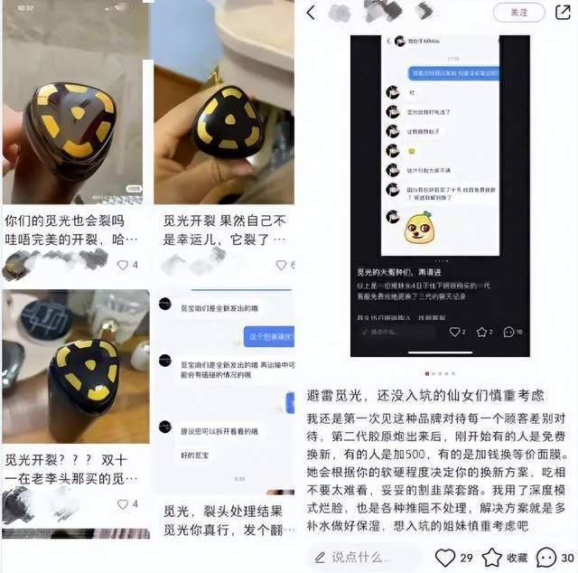 但是“进度远超同行”的觅光,也曾遭消费者质疑与投诉。在社交媒体上,有消费者表示购买的产品在短时间内出现了开裂问题;在“黑猫投诉”平台上,搜索“觅光”也有224条投诉,内容涉及产品售后维修、质量问题、夸大宣传等方面。