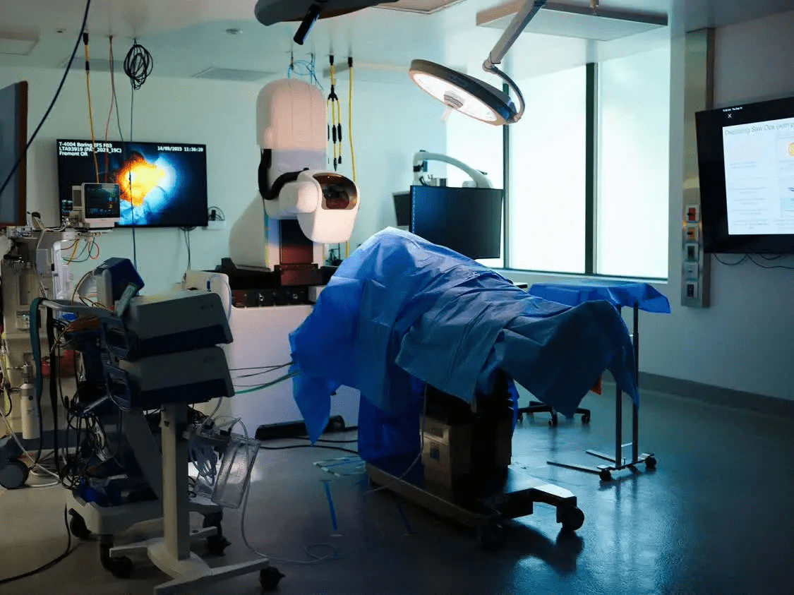 在进行手术时,Neuralink的首要任务是避免在患者的大脑中产生任何出血或疤痕组织。为此,Neuralink还制造了自己的手术机器人。这是一台7英尺(约合2.1米)高的白色机器,底座稳定,呈立方体,支撑着一个电子设备塔。