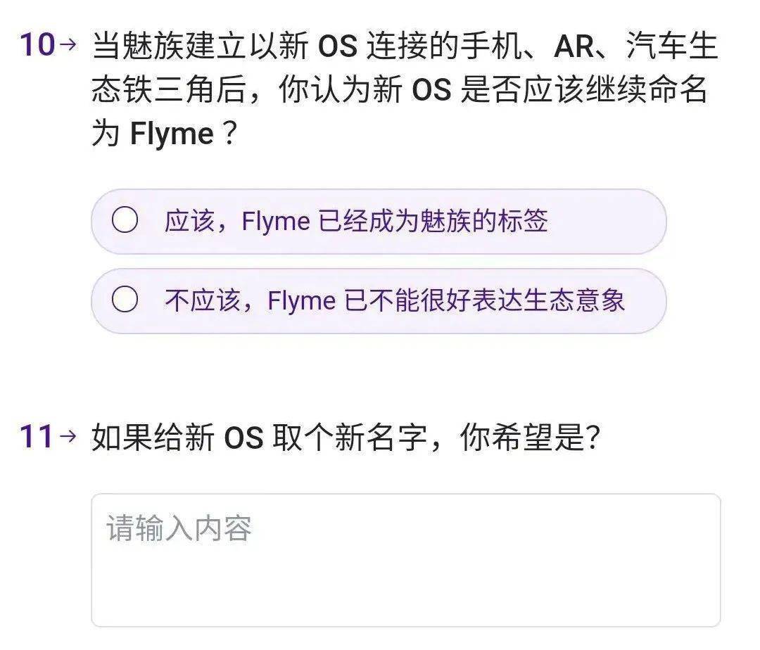 从华为HarmonyOS、小米澎湃OS(HyperOS),再到vivo自研蓝河操作系统(BlueOS手表首发),各大手机厂商几乎都有布局多端系统OS,最近魅族还发起了一项主题为「Flyme 10推荐度调查」的问卷,调研大家对Flyme命名的看法,以及询问『当魅族建立以新OS连接的手机、AR、汽车生态铁三角后,认为新OS是否应该继续命名为Flyme?』 今天魅族官方在线征集中文OS名称。